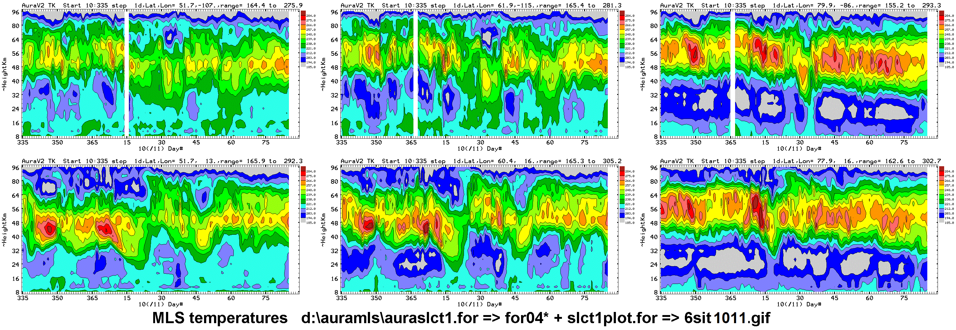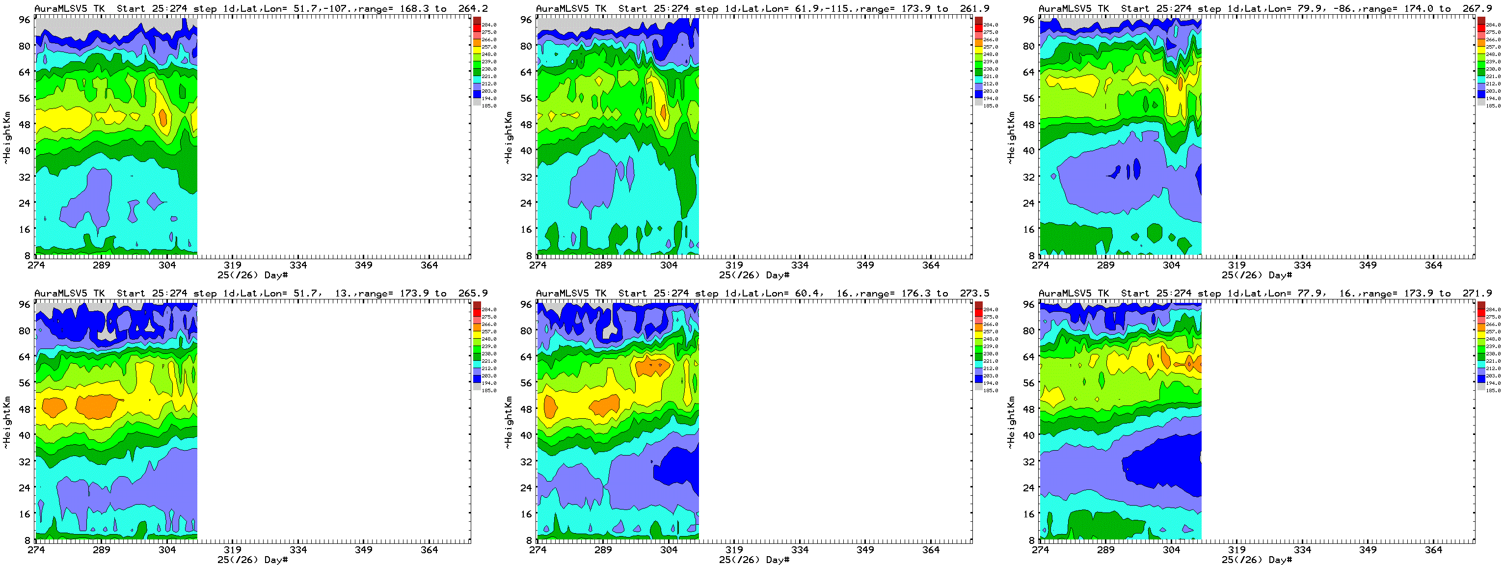 Six chosen Northern hemisphere locations: daily average Aura MLS