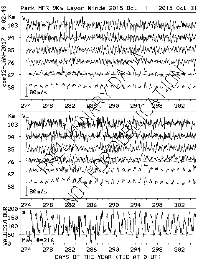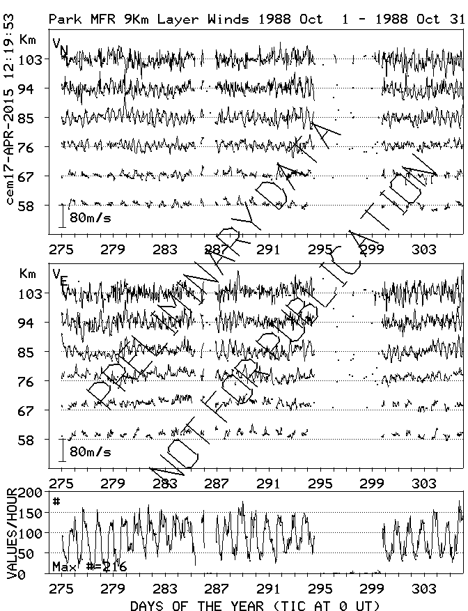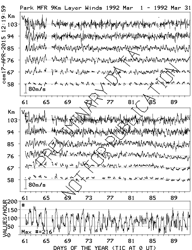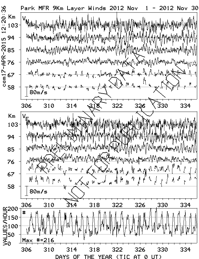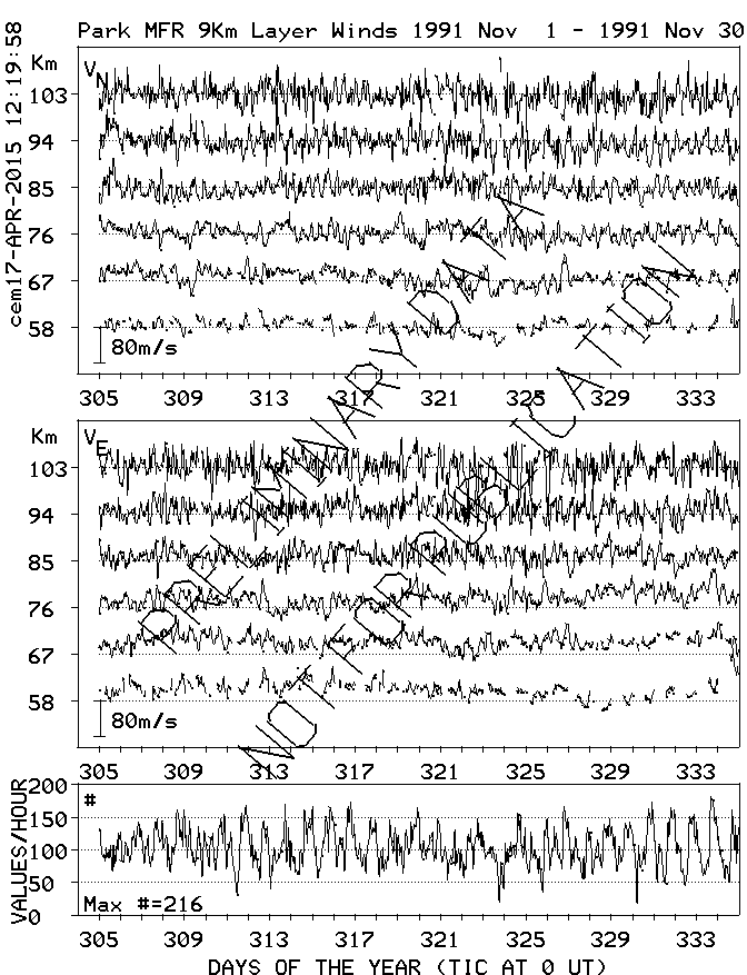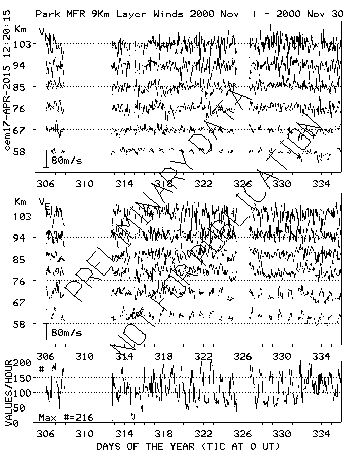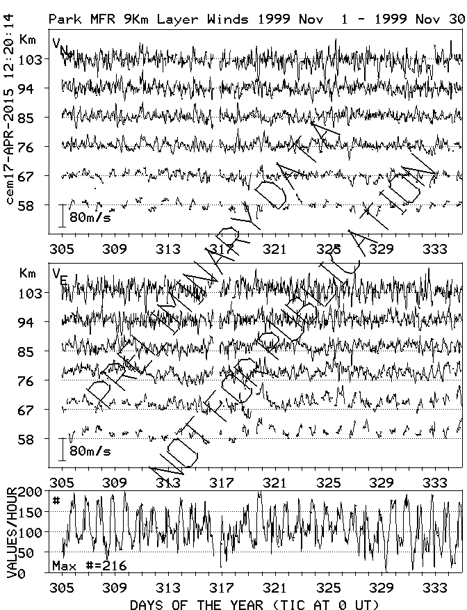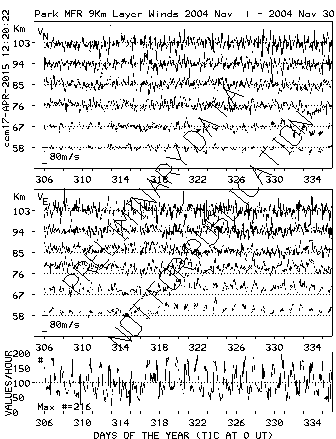 Saskatoon (52N,107W) MF Radar Winds, monthly quick look plots