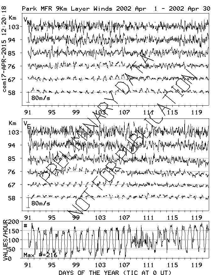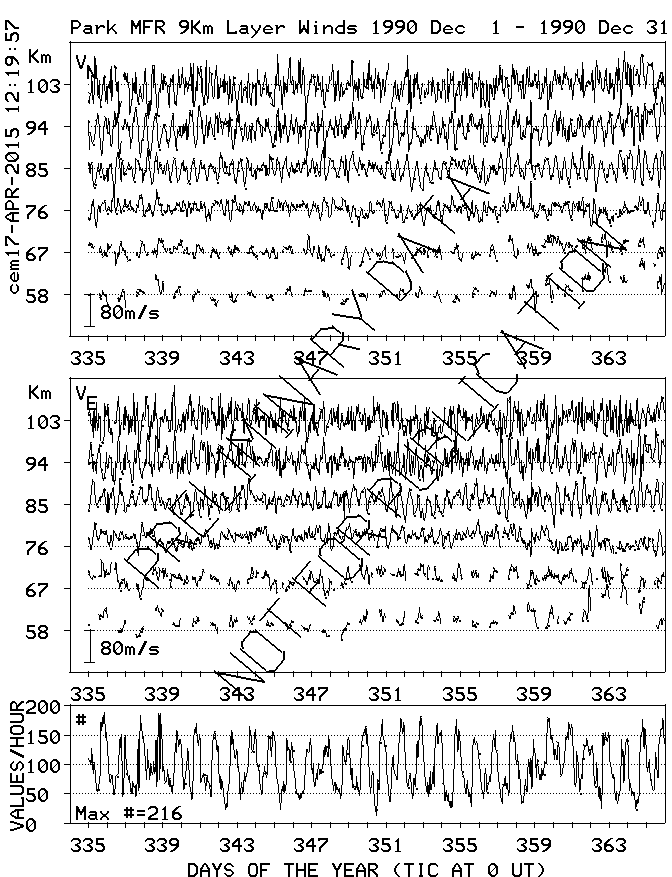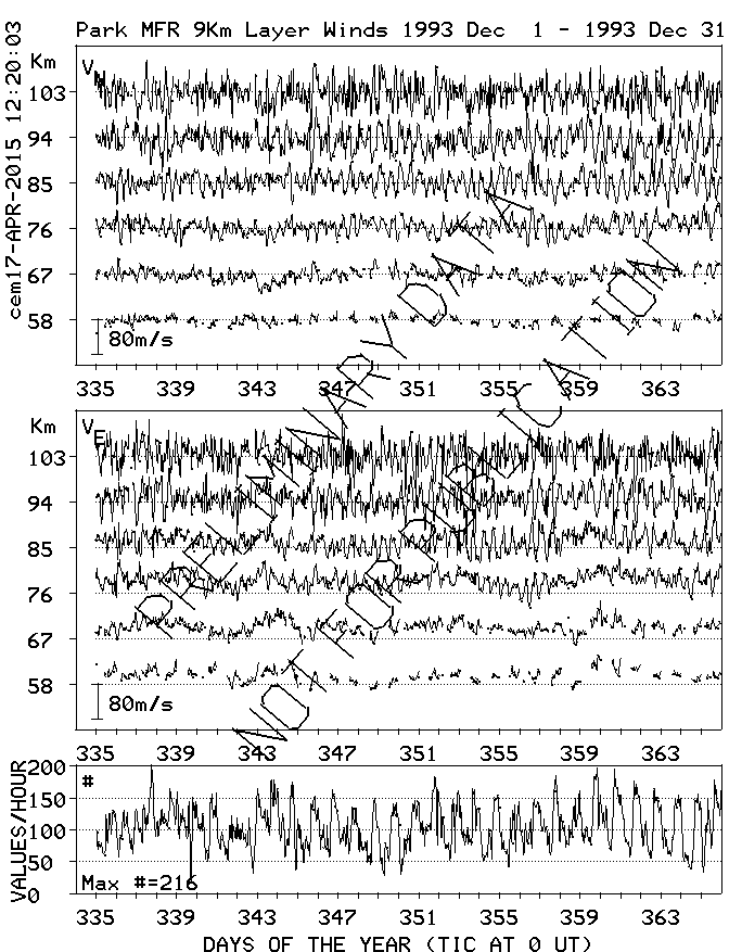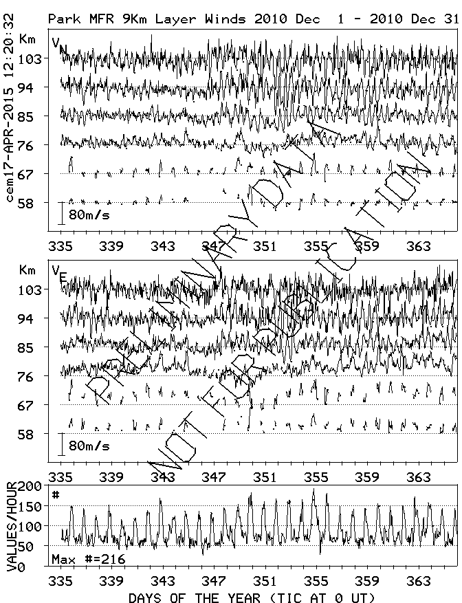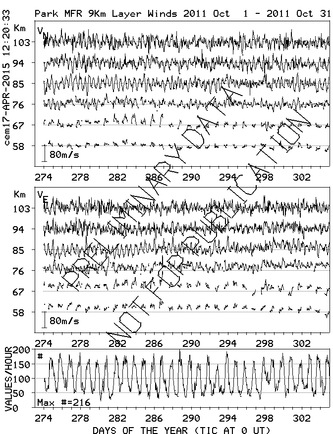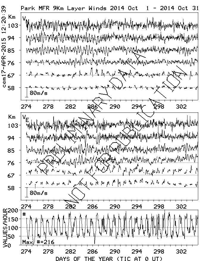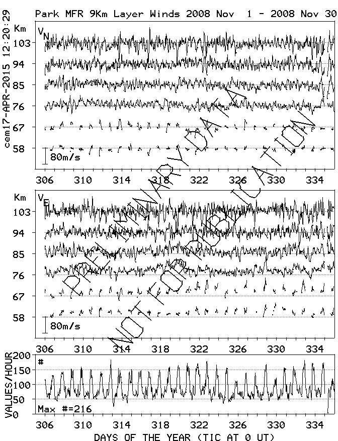 Saskatoon (52N,107W) MF Radar Winds, monthly quick look plots