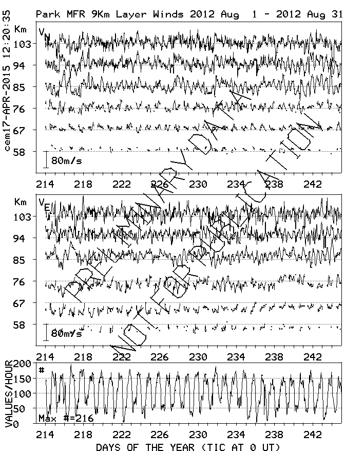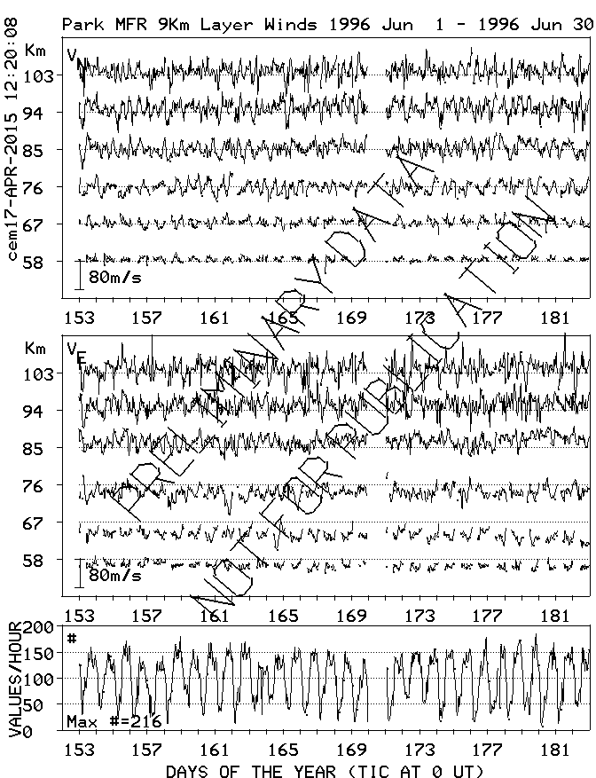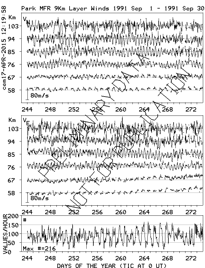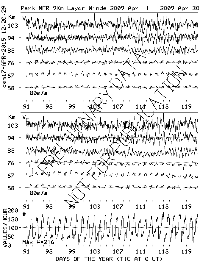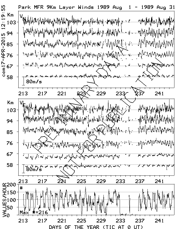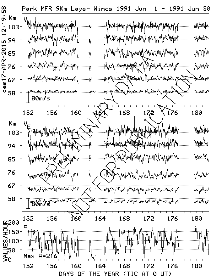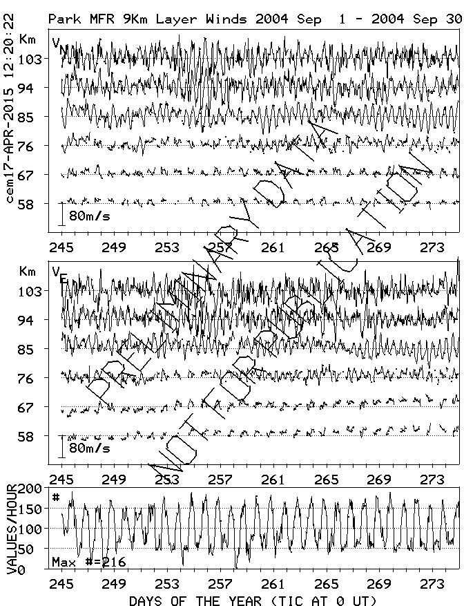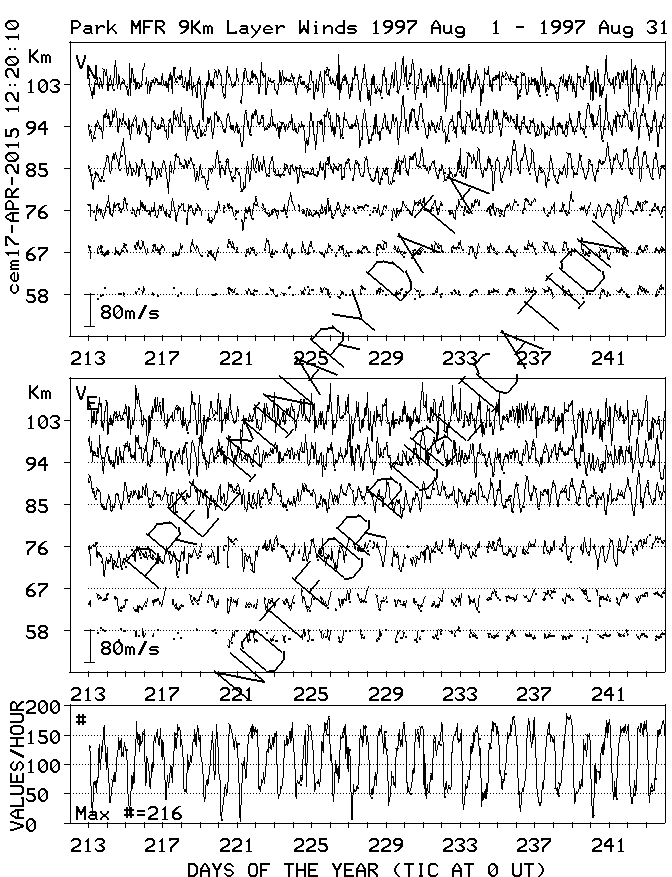 Saskatoon (52N,107W) MF Radar Winds, monthly quick look plots