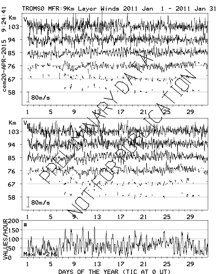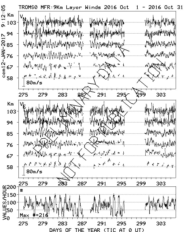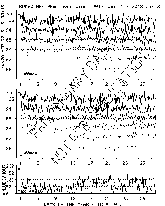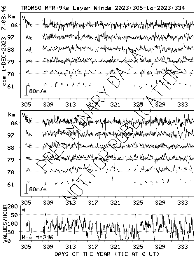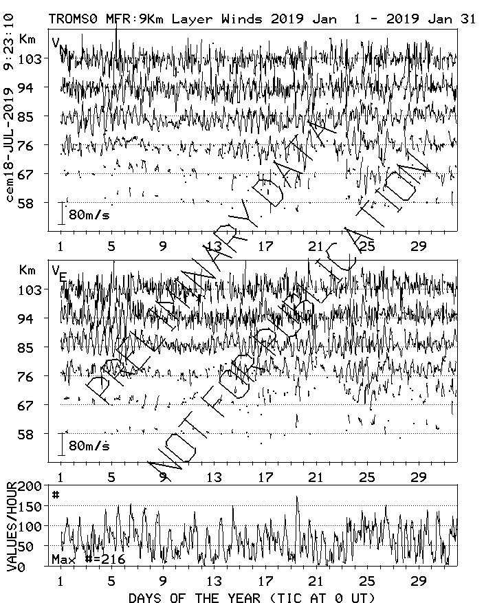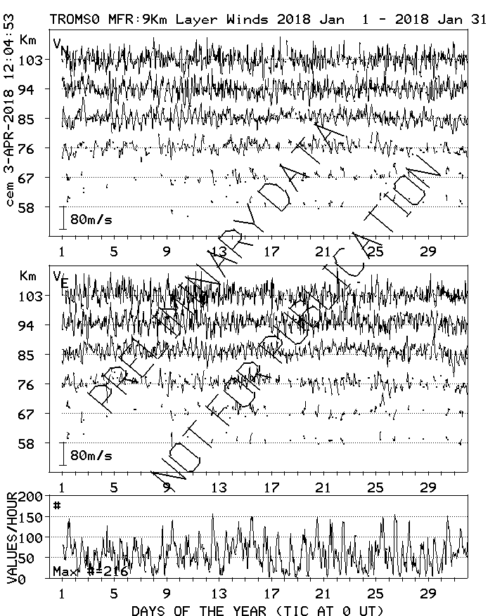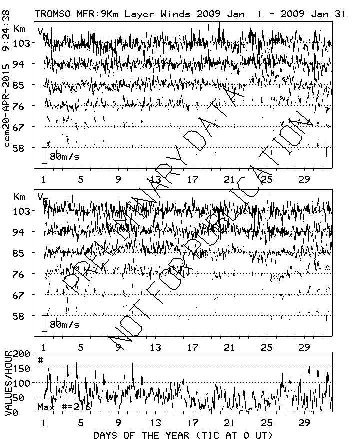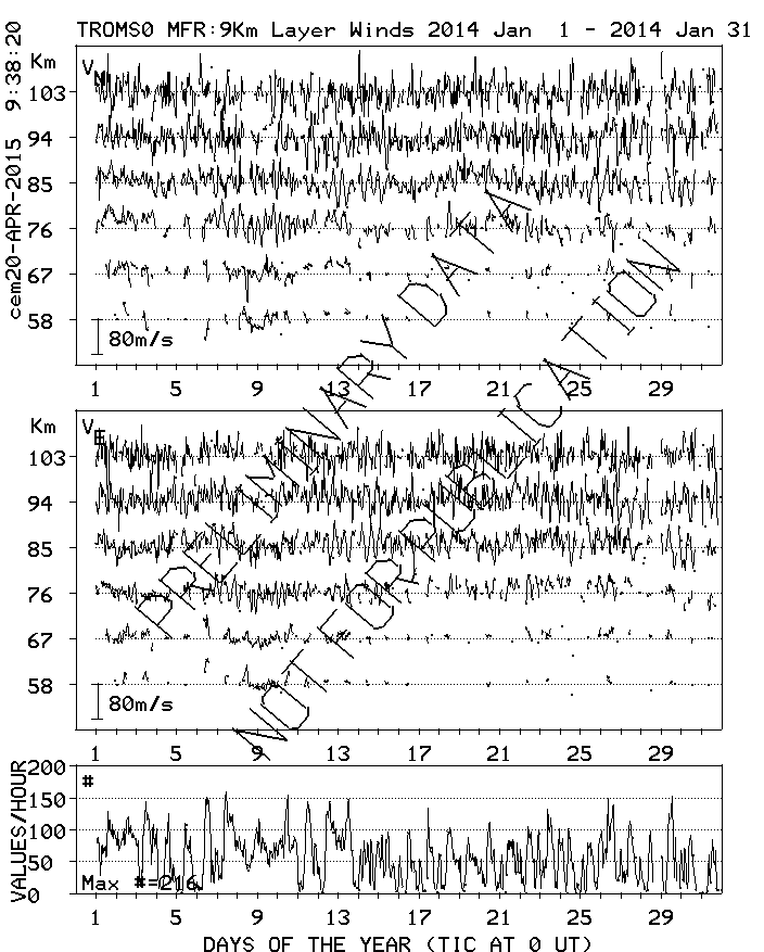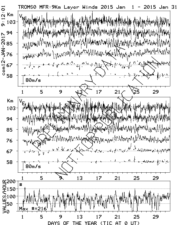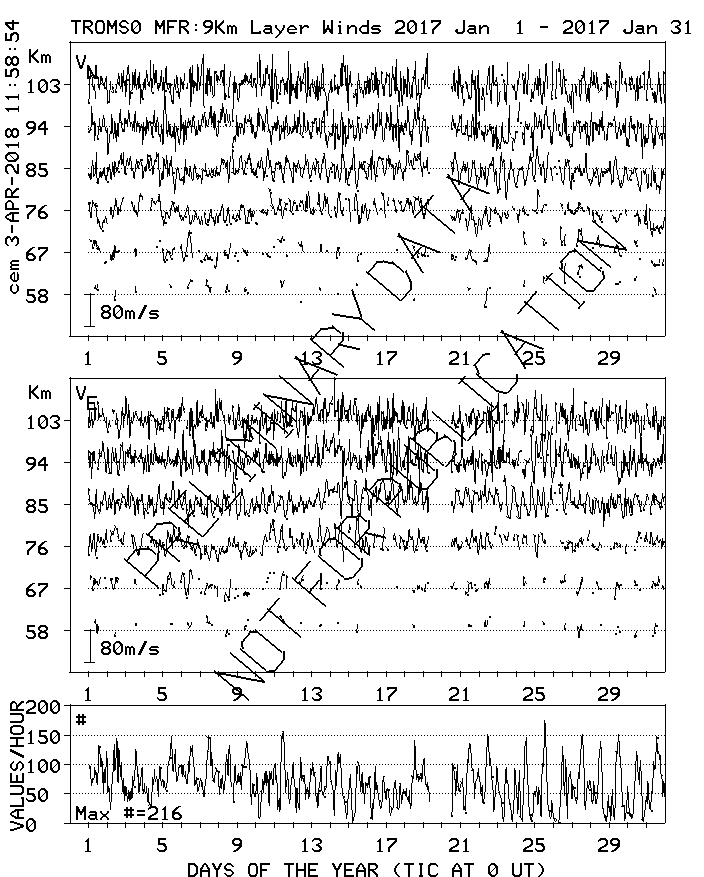 Tromsø (70N,19E) MF Radar Winds, monthly quick look plots
