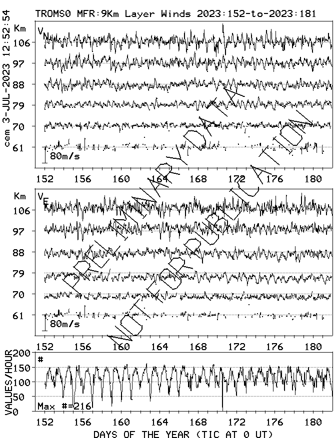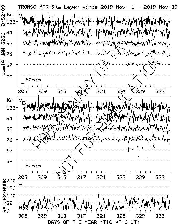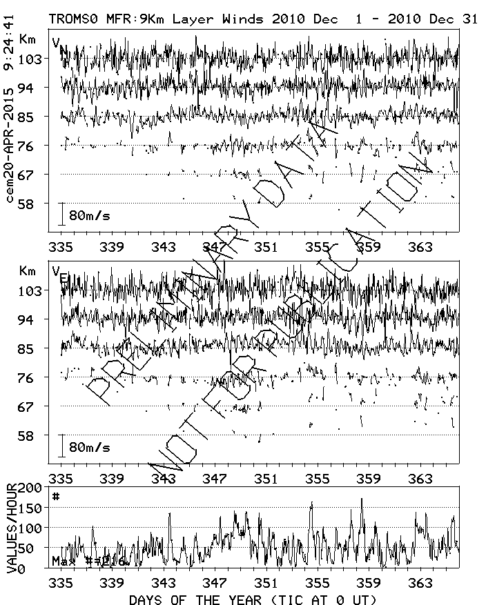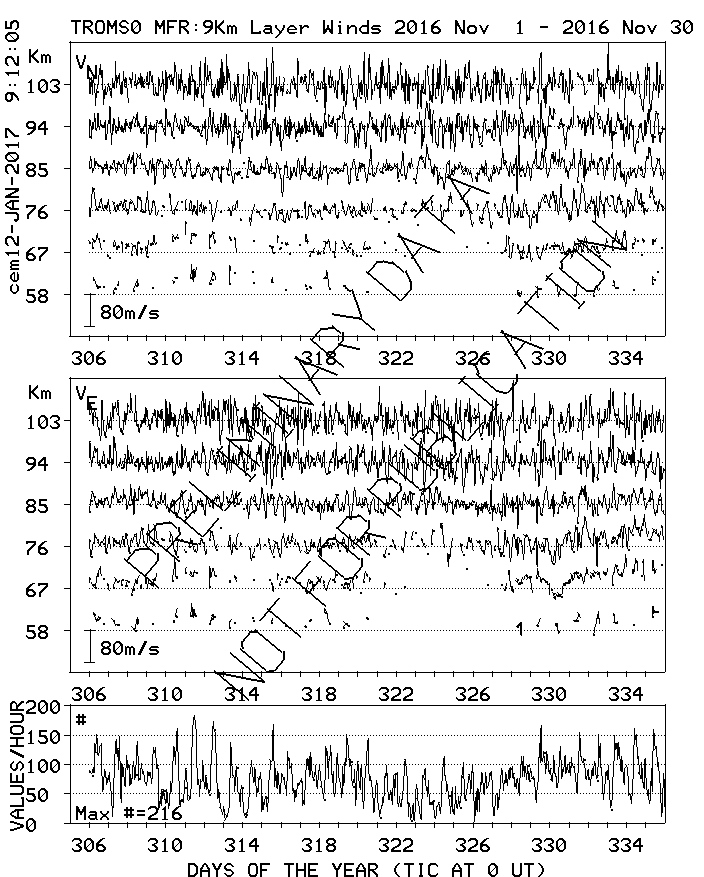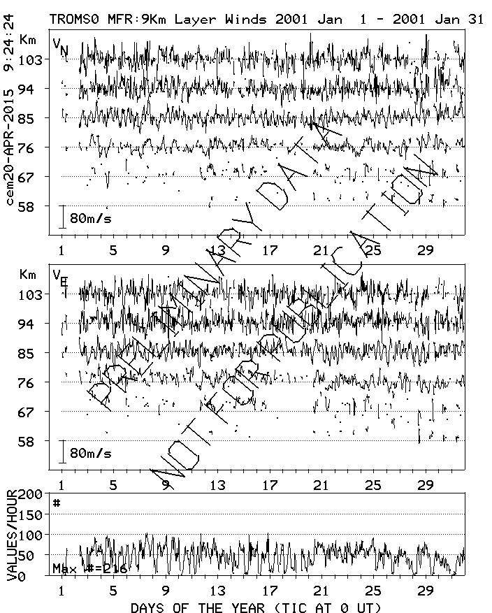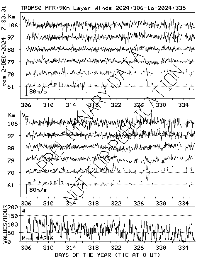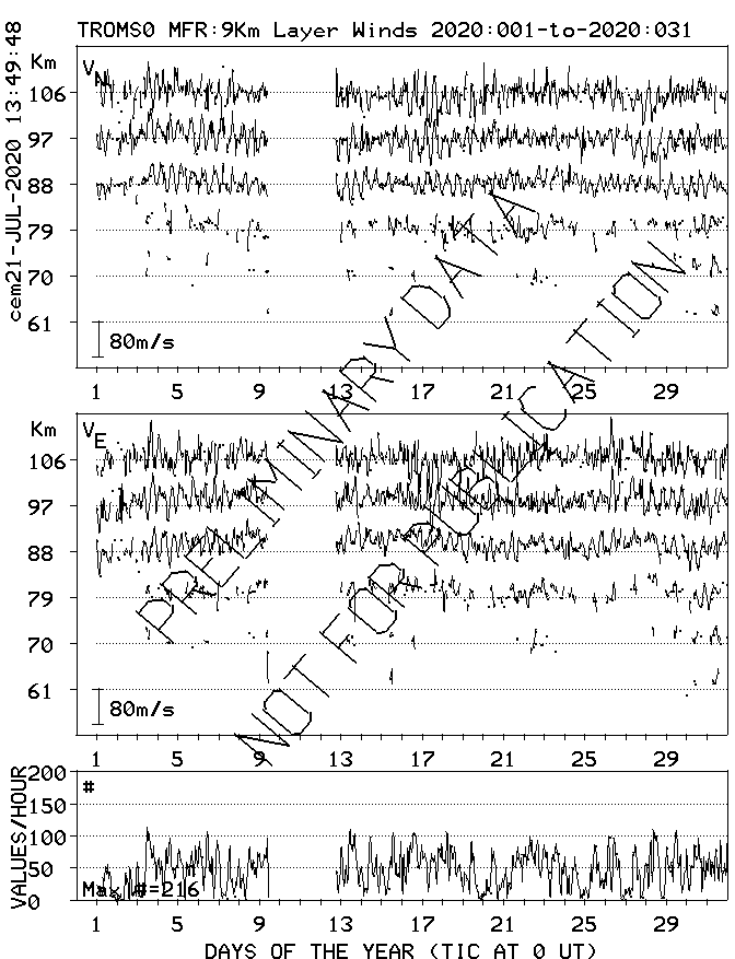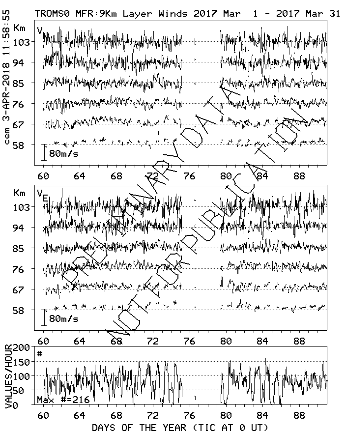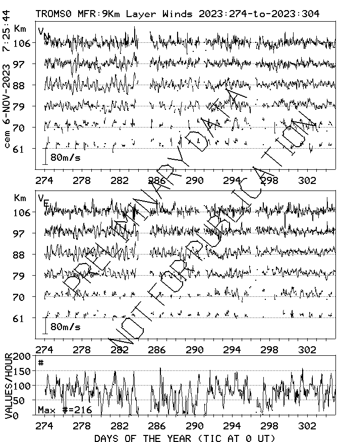 Tromsø (70N,19E) MF Radar Winds, monthly quick look plots