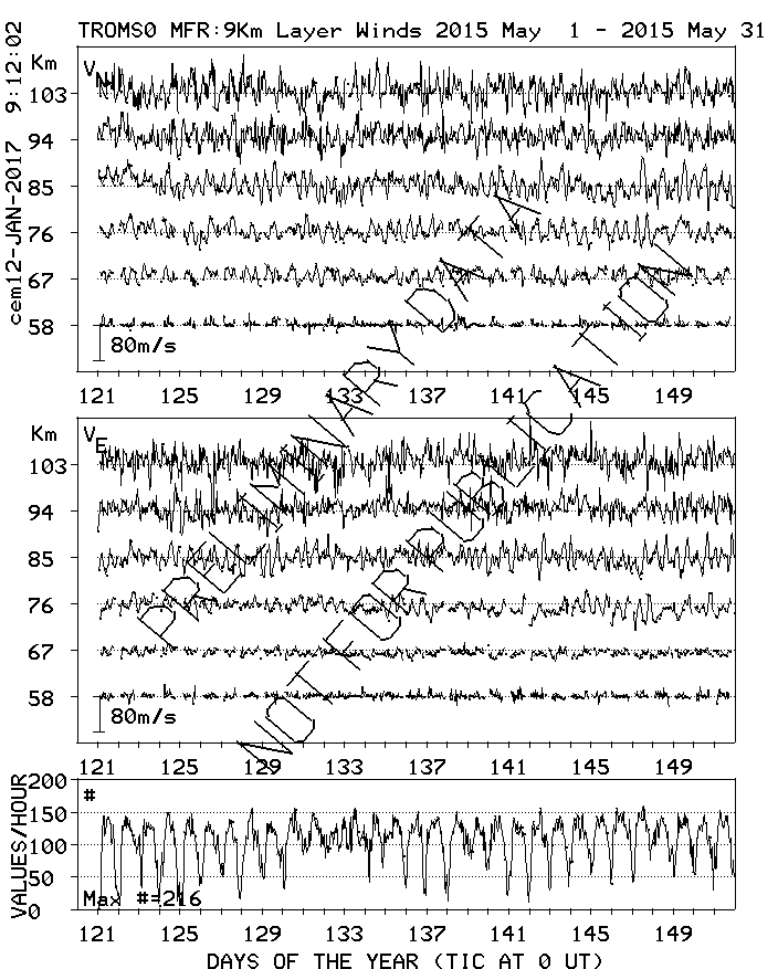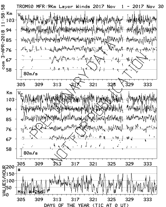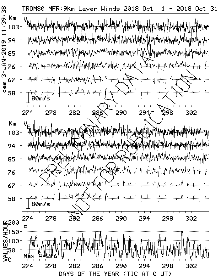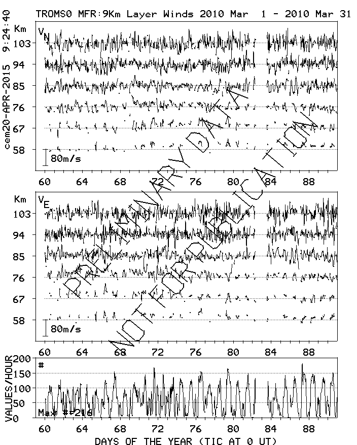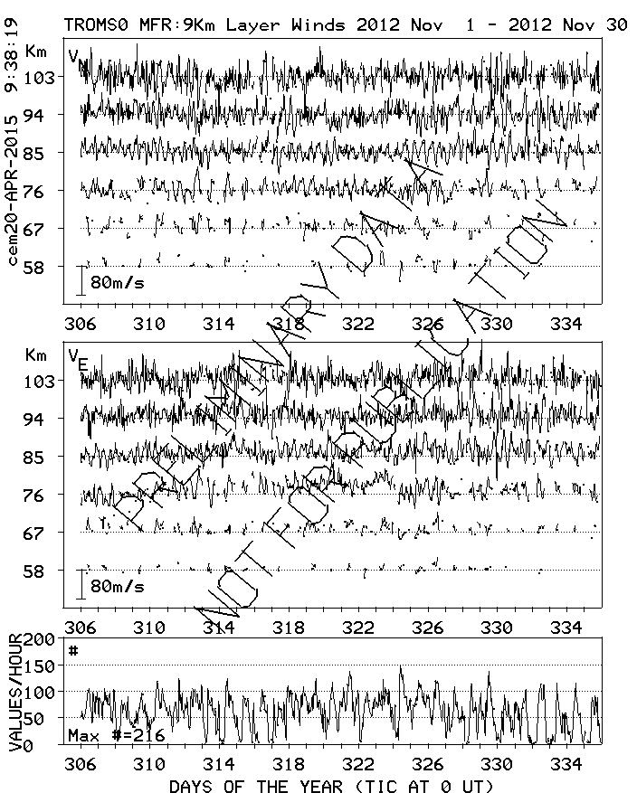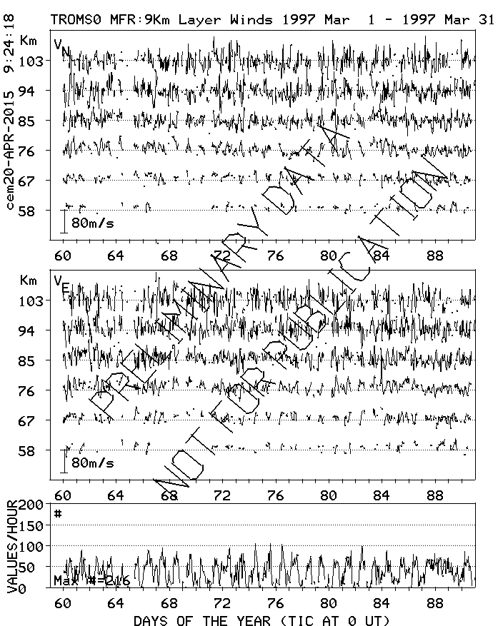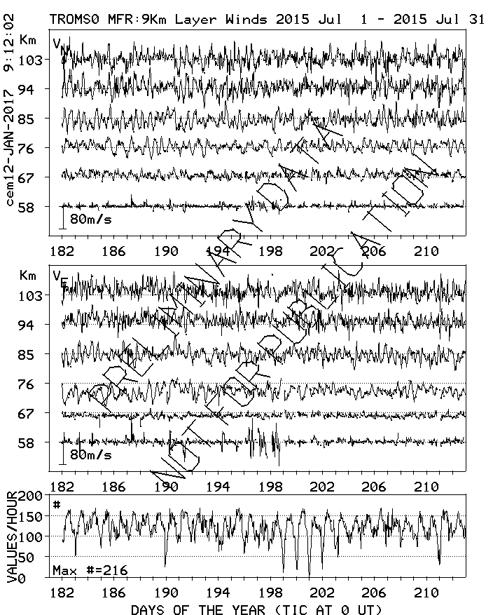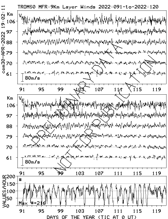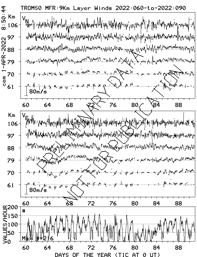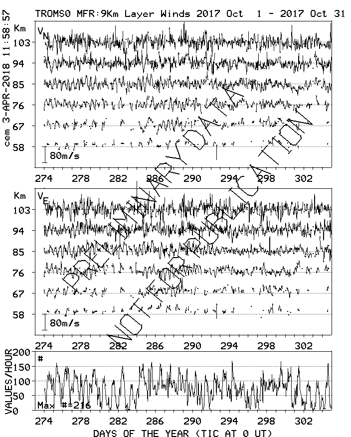 Tromsø (70N,19E) MF Radar Winds, monthly quick look plots
