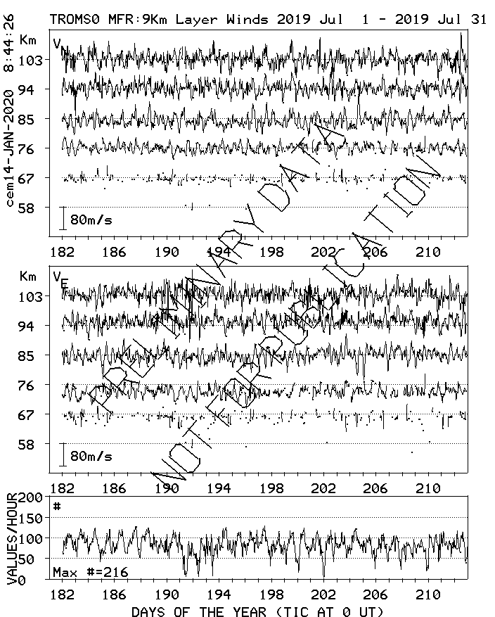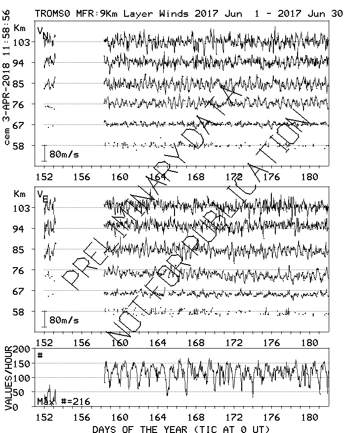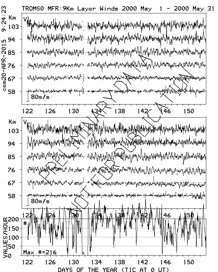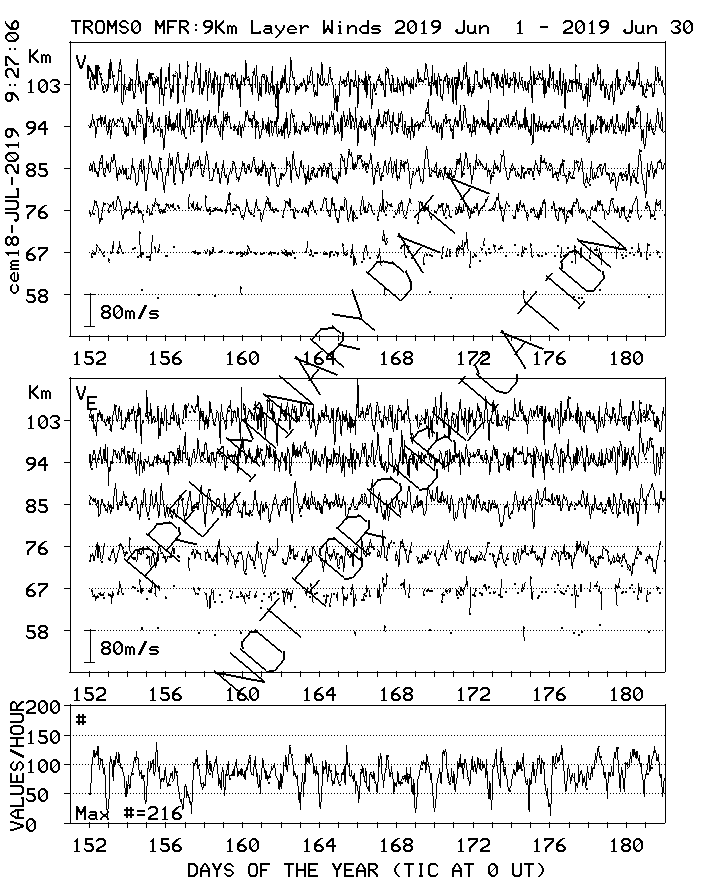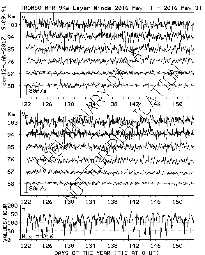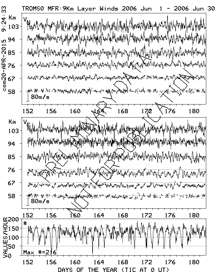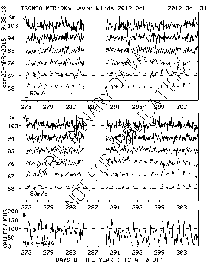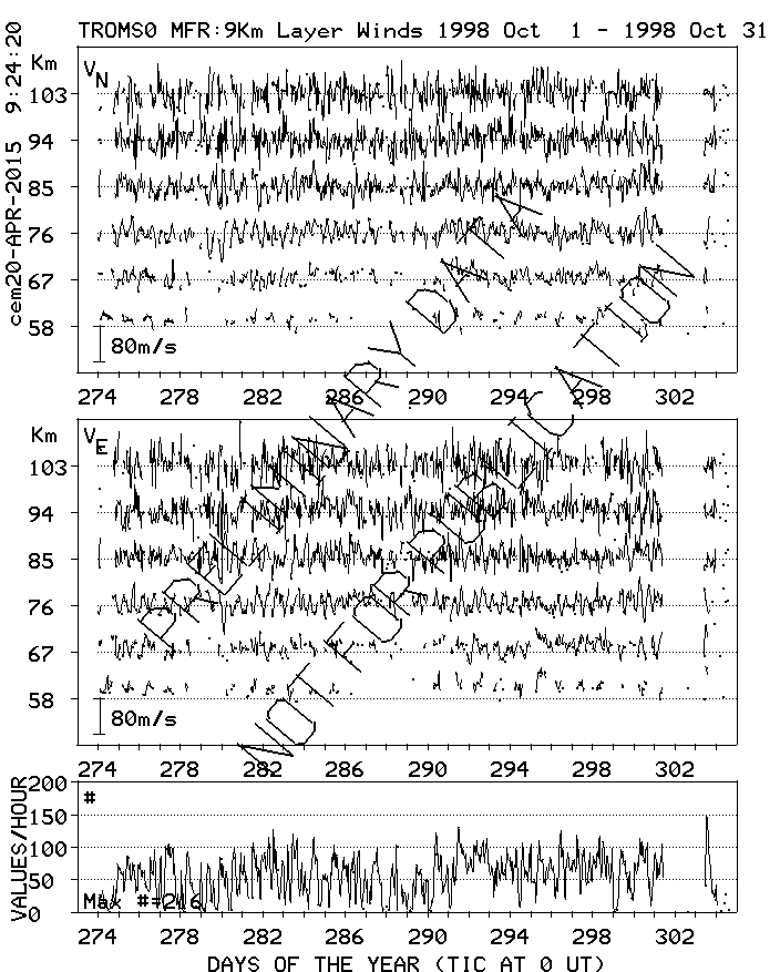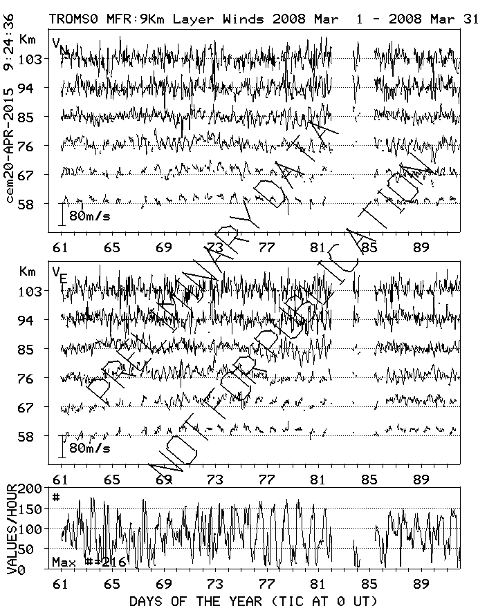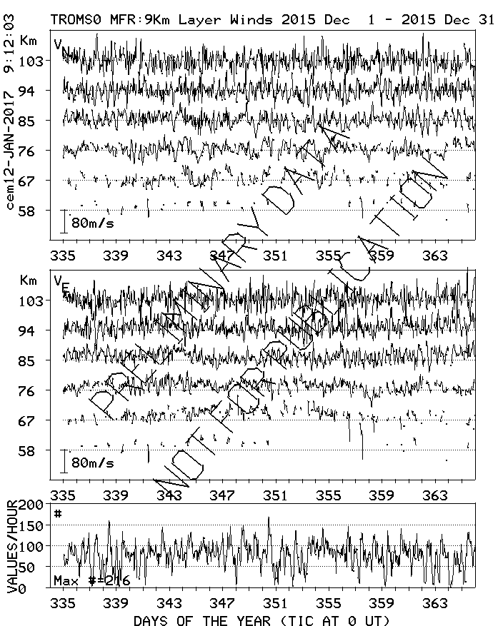 Tromsø (70N,19E) MF Radar Winds, monthly quick look plots