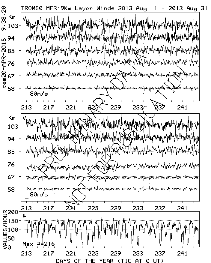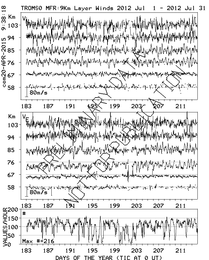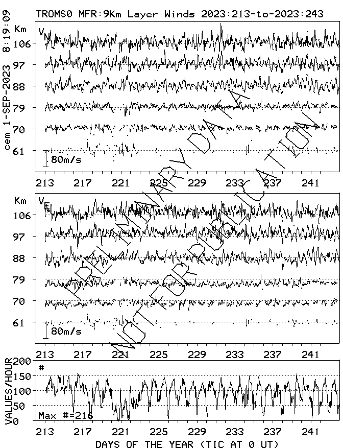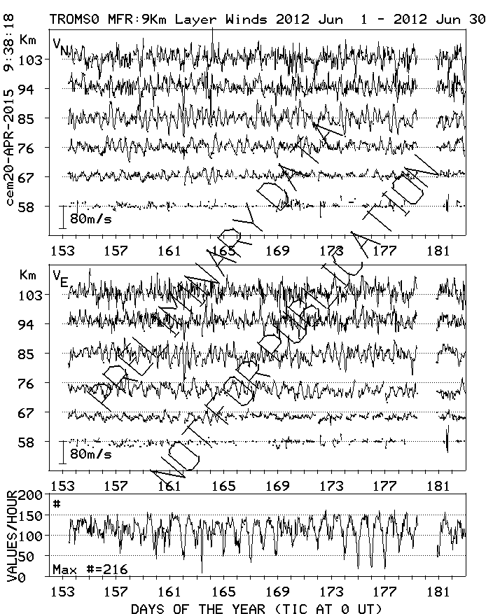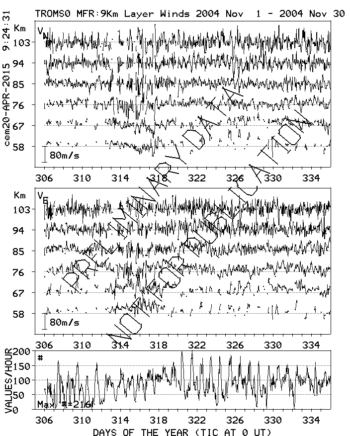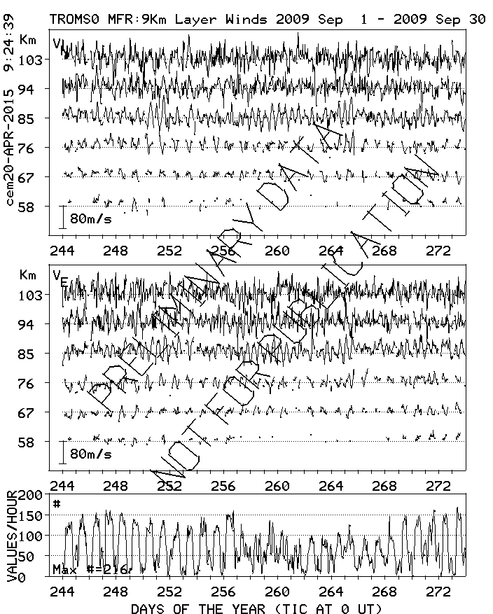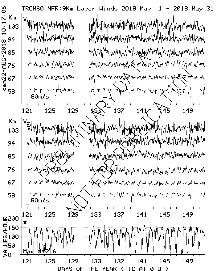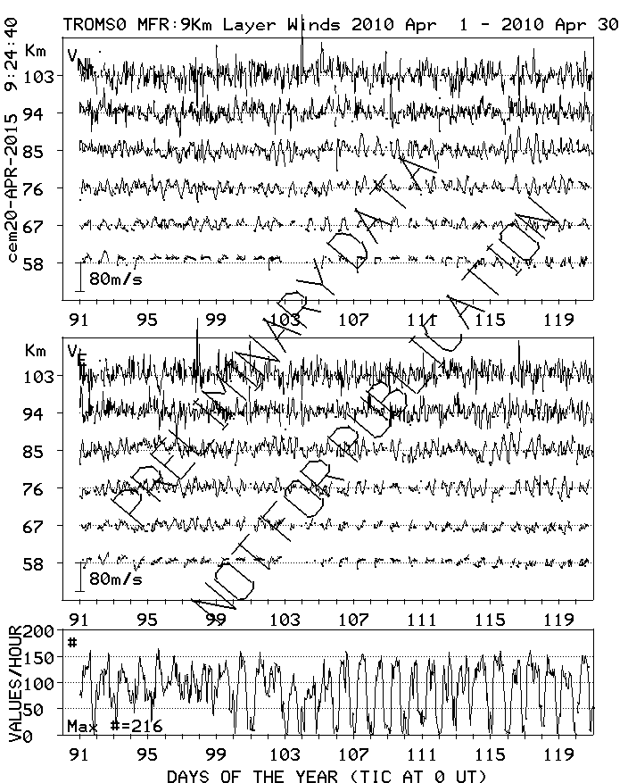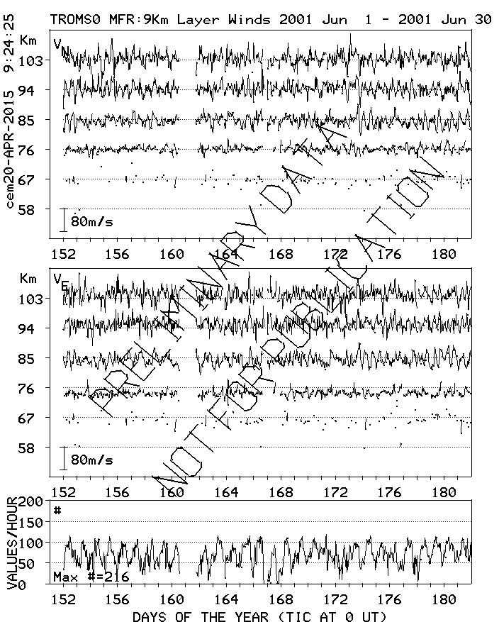 Tromsø (70N,19E) MF Radar Winds, monthly quick look plots