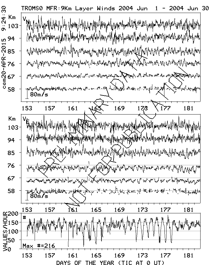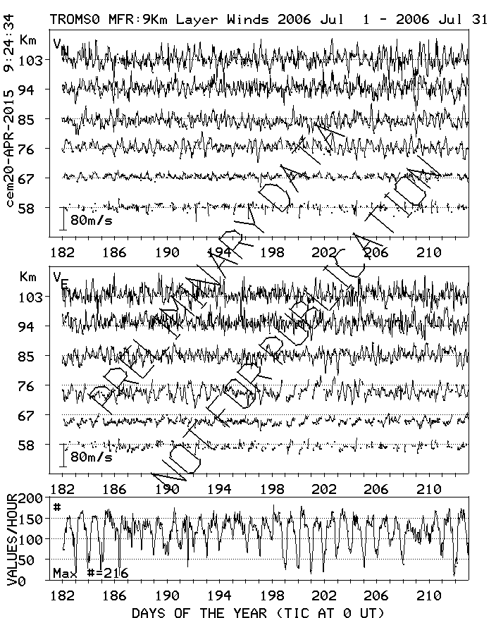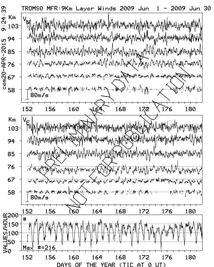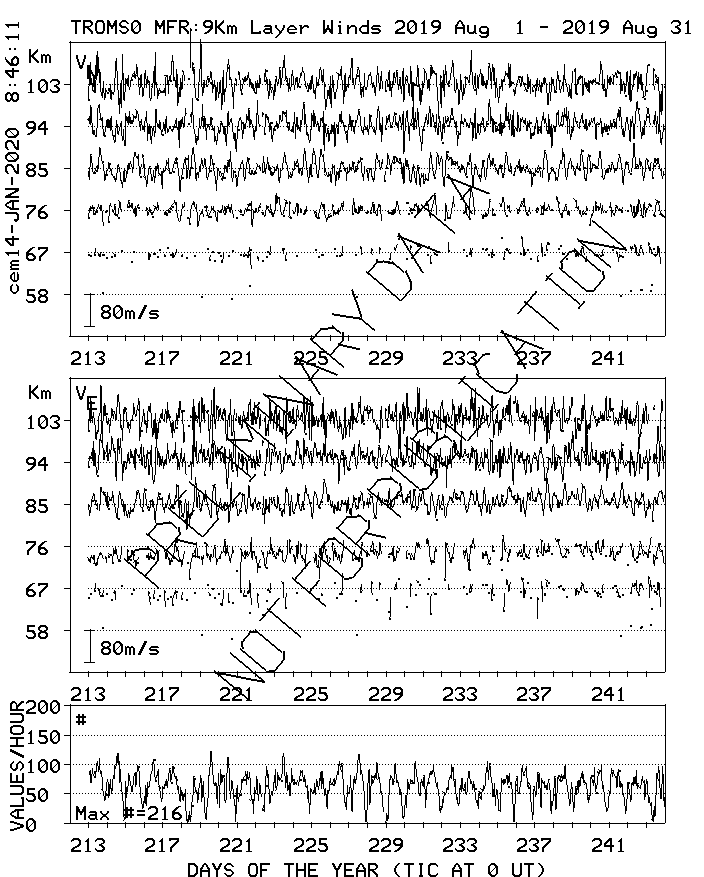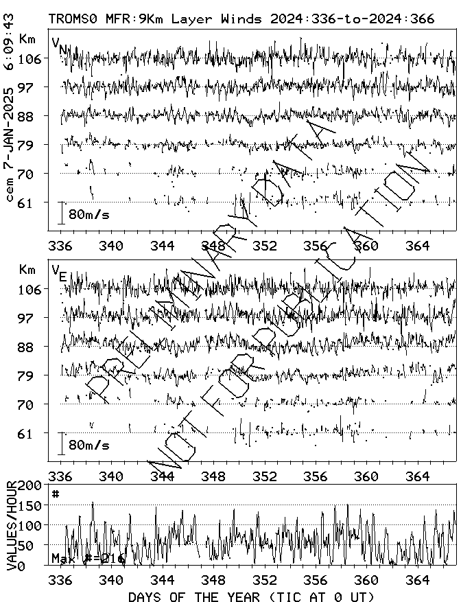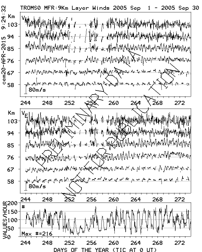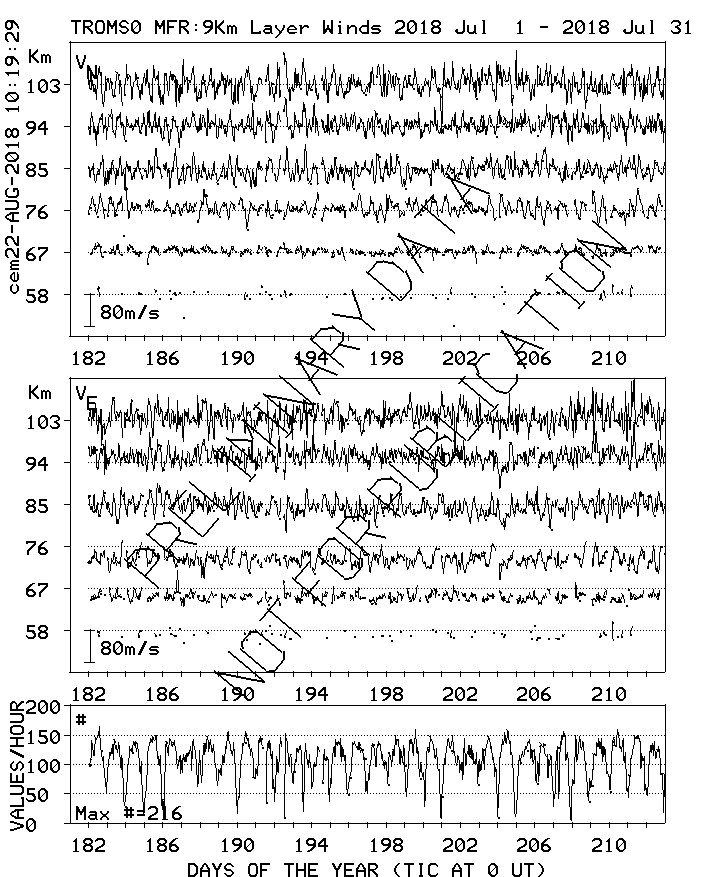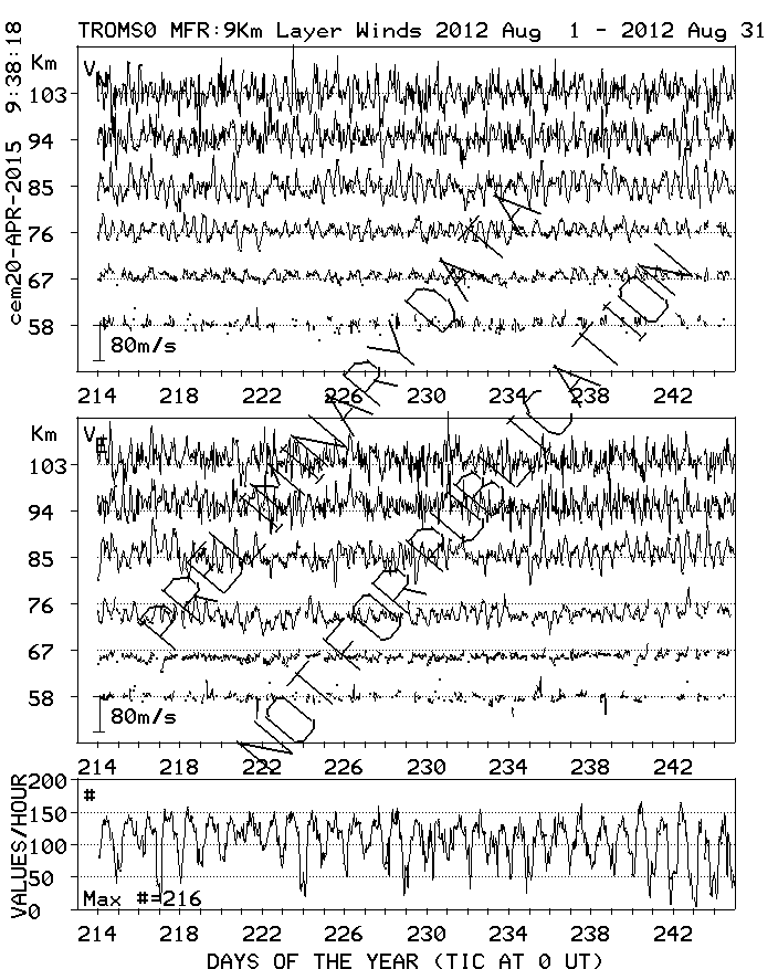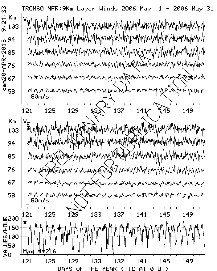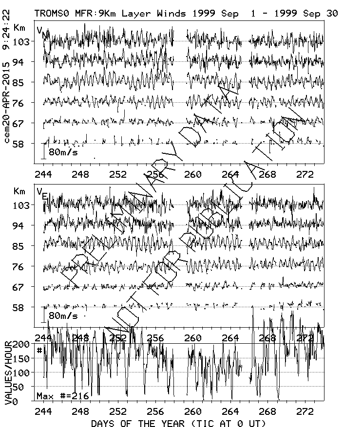 Tromsø (70N,19E) MF Radar Winds, monthly quick look plots