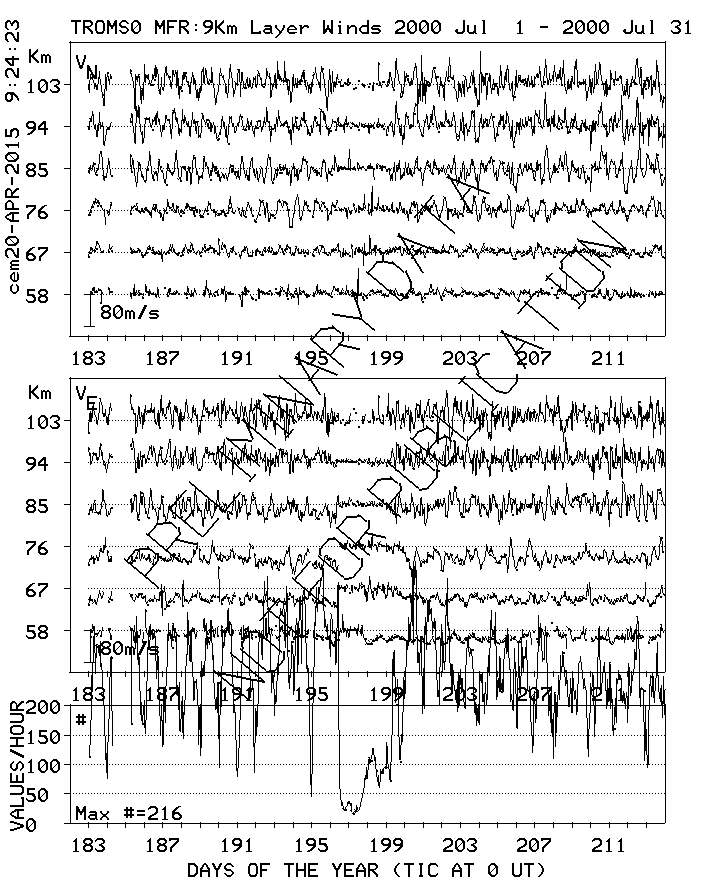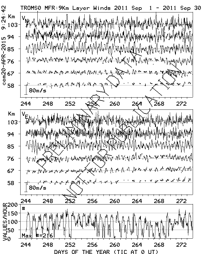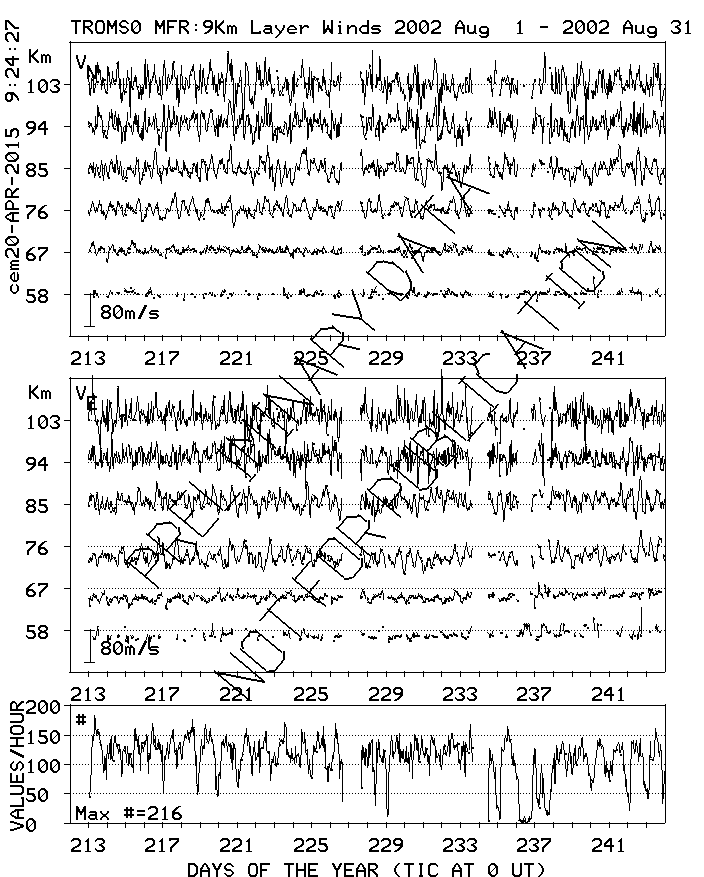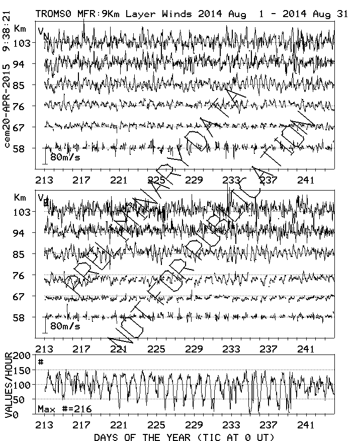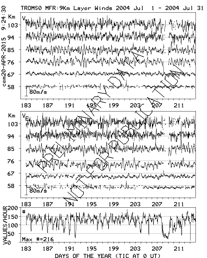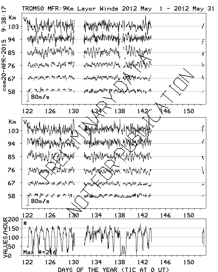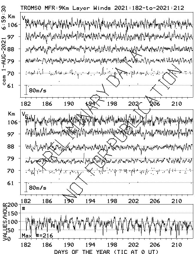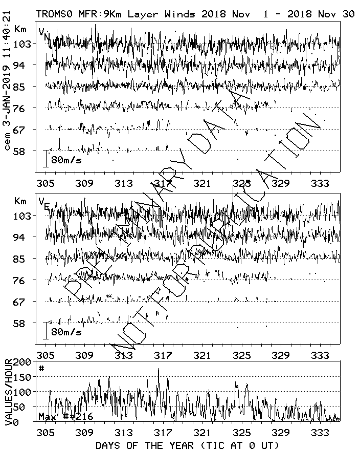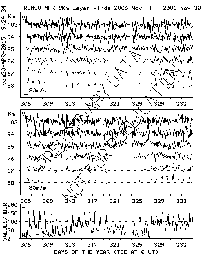 Tromsø (70N,19E) MF Radar Winds, monthly quick look plots