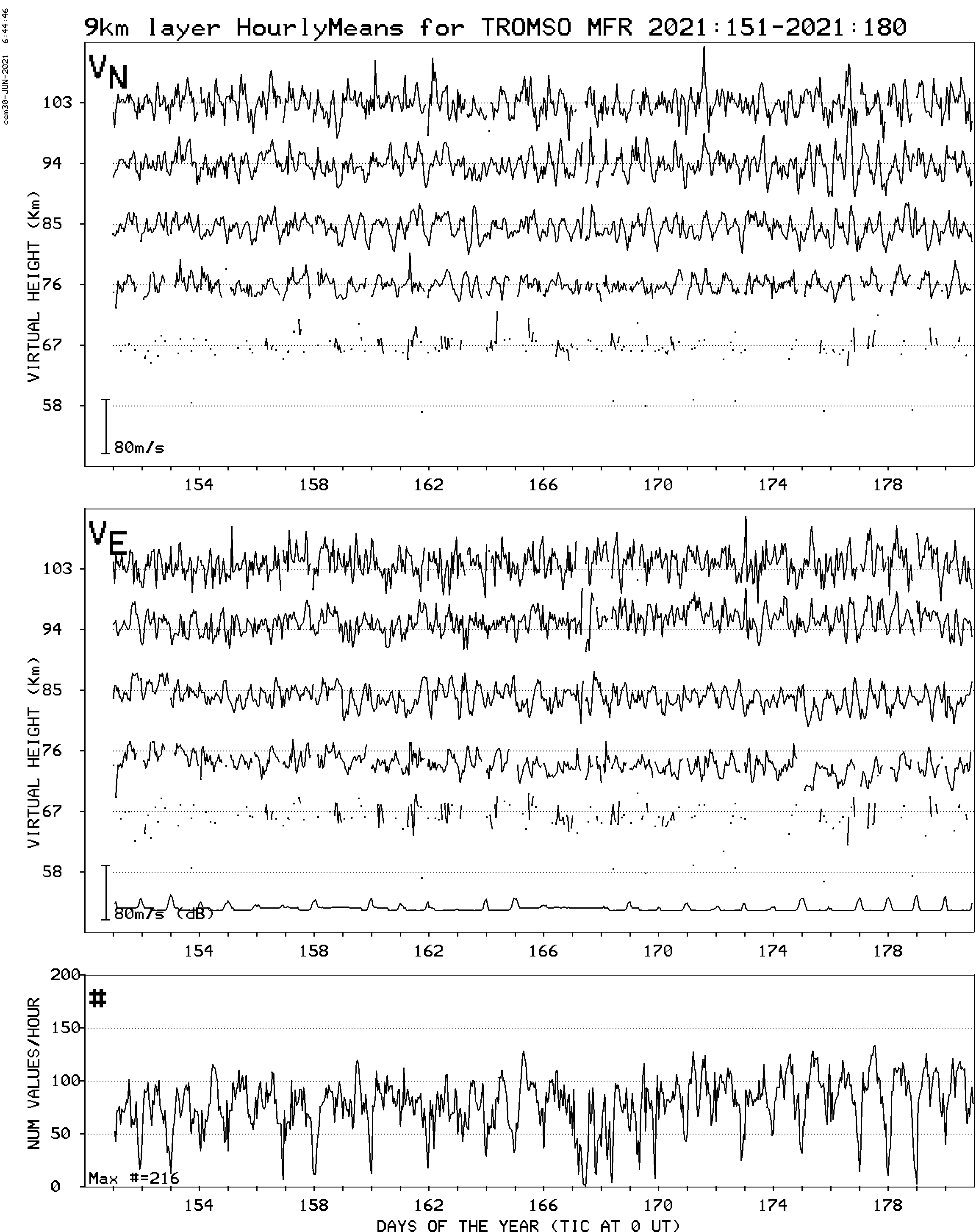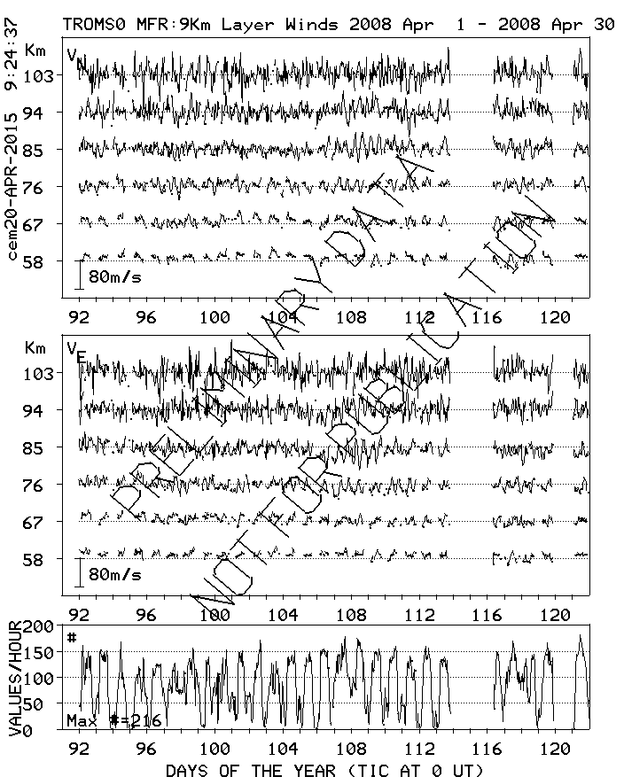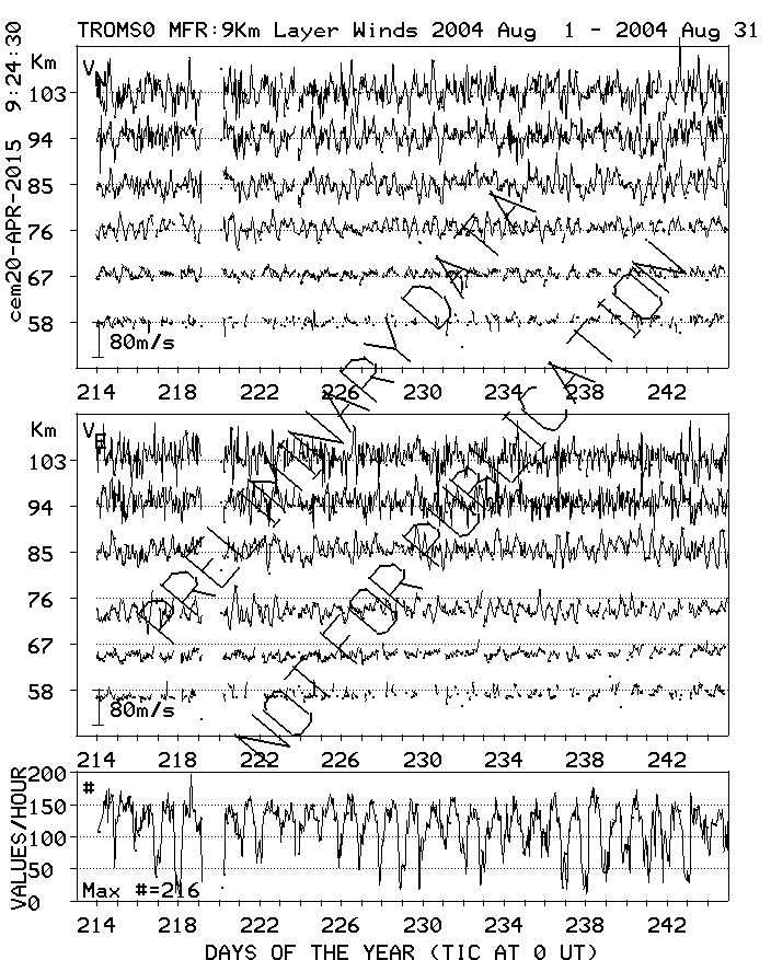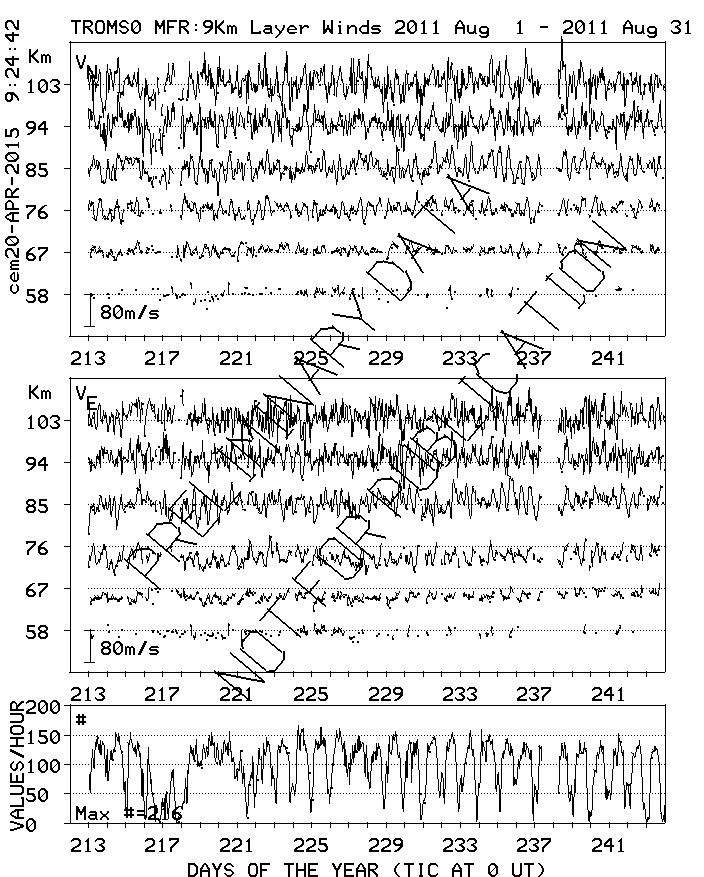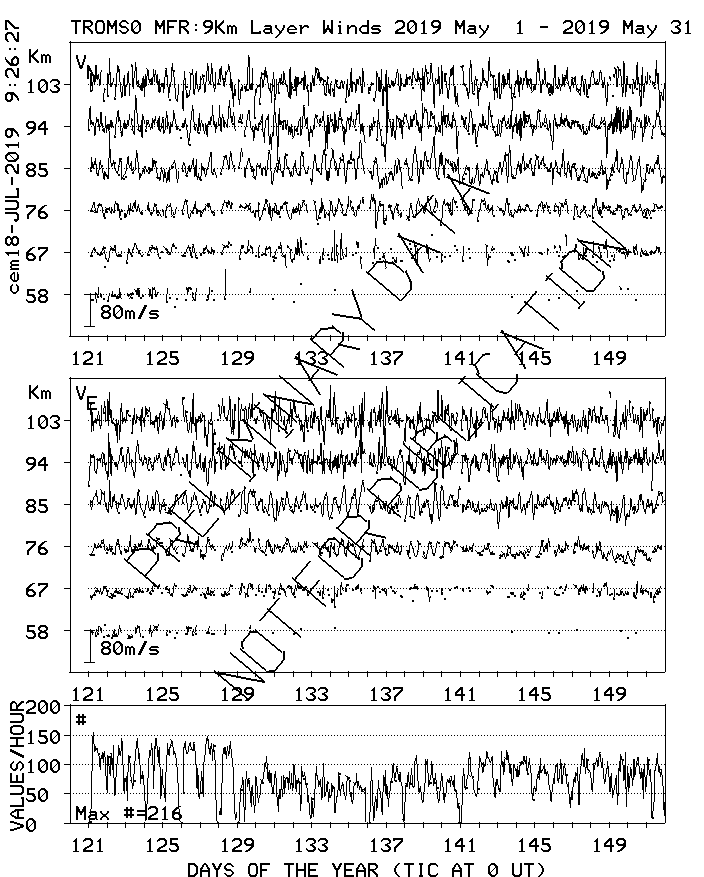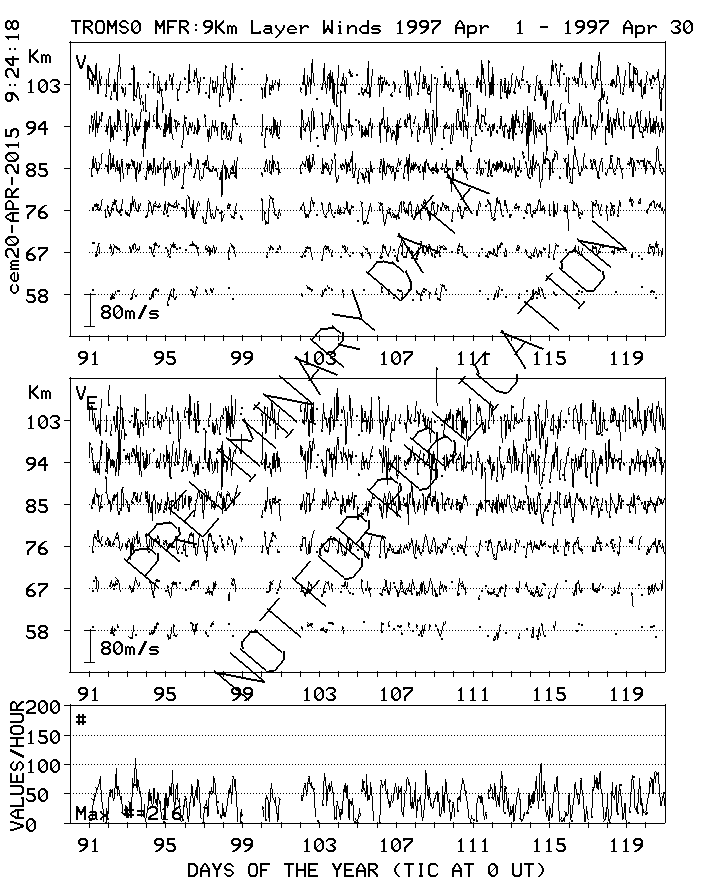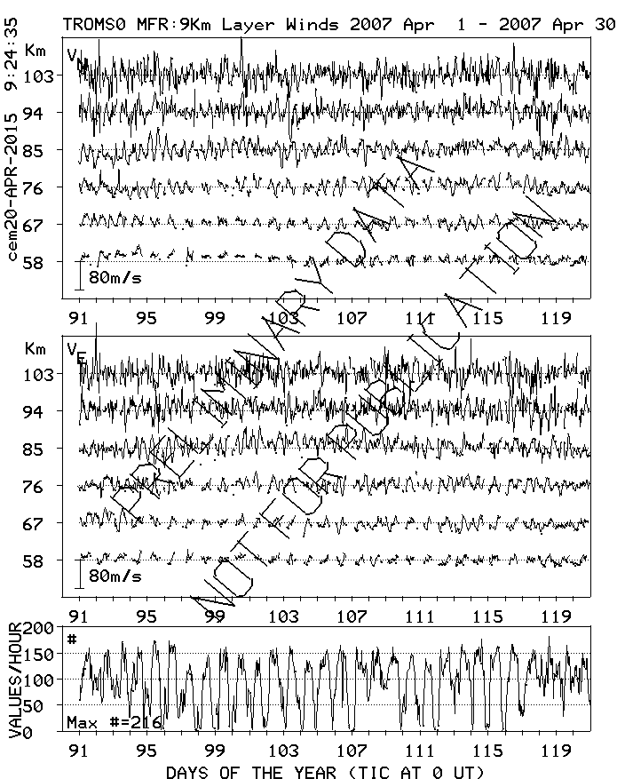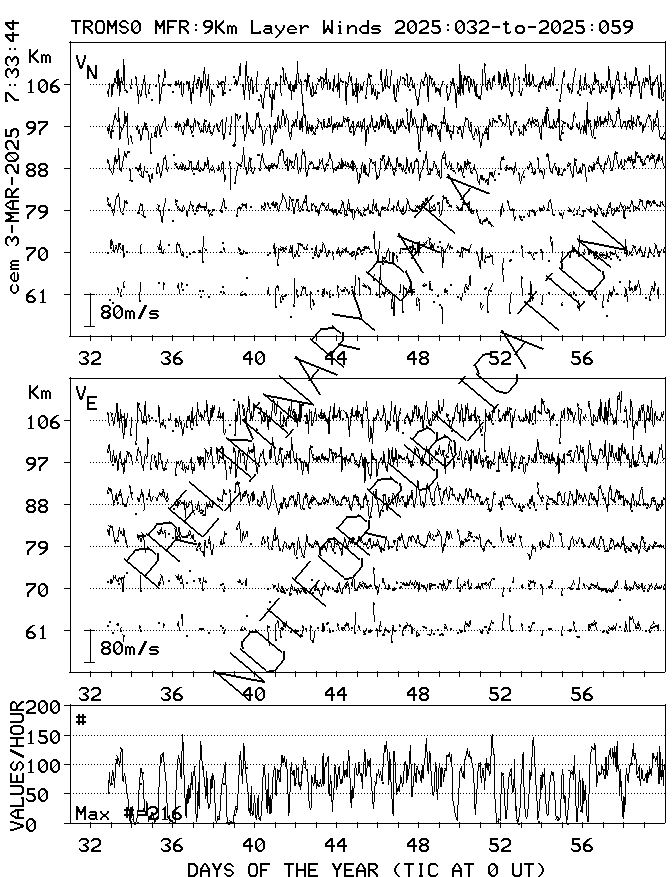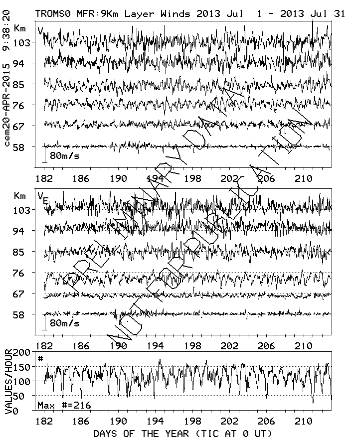 Tromsø (70N,19E) MF Radar Winds, monthly quick look plots