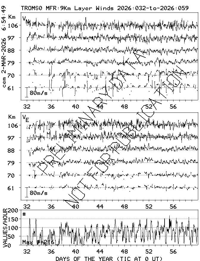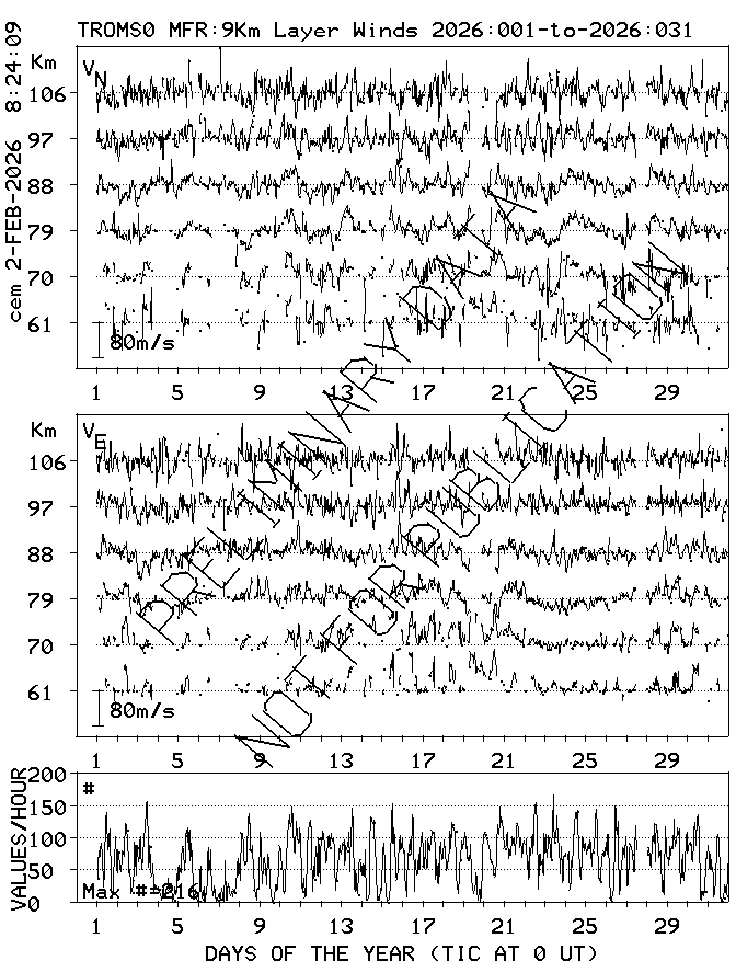Tromsø (70N,19E) MF Radar Winds, monthly quick look plots